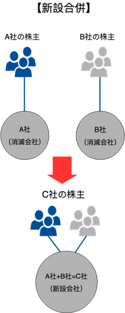 複数の会社が合併して新しい会社を設立する形の合併です。