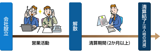 会社を解散した後は、すぐに法人格が消滅するわけではなく、会社は清算の目的の範囲内で存続することになります。